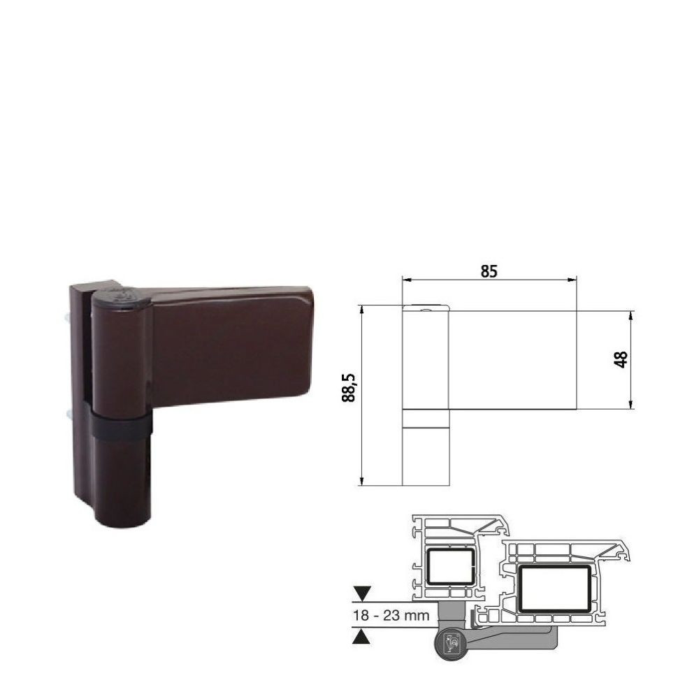 Dr. Hahn KT-S, pánt/zsanér, műanyag ajtóra, barna, RAL 8077