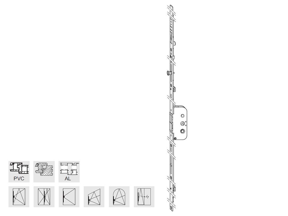 1 gombafejes reteszelőcsap, ajánlott szárnyfalc méret tartomány 1750-2000 mm.
