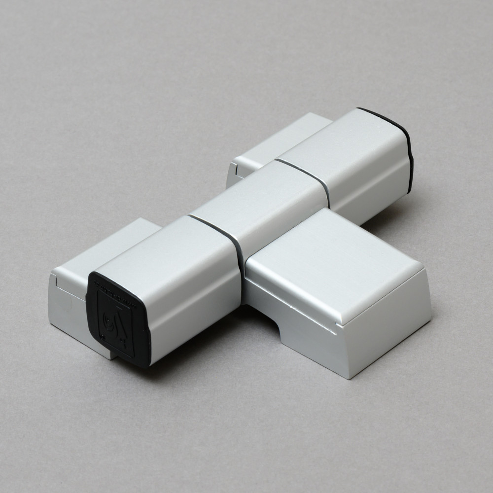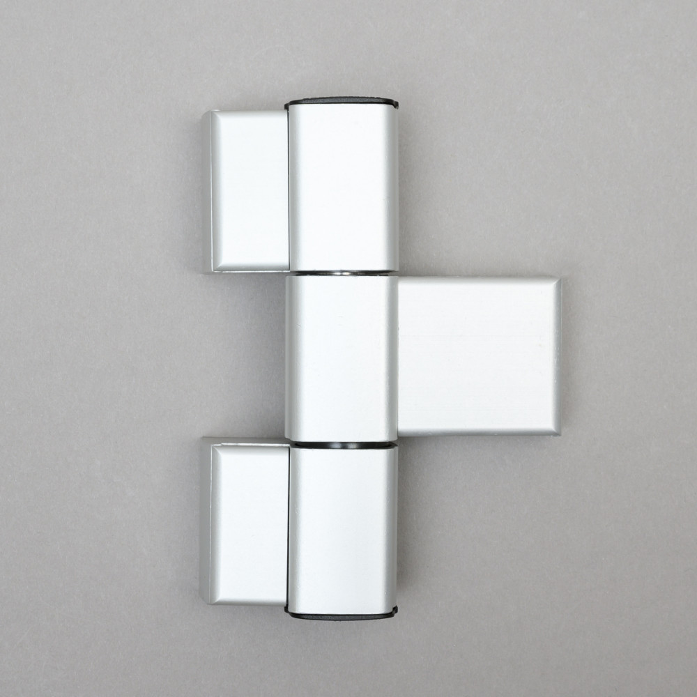 Háromrészes ajtópánt, extrudált alumínium test, acél tengely, 6 irányba állítható, jobbos és