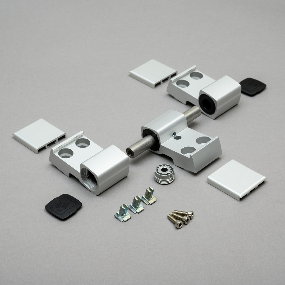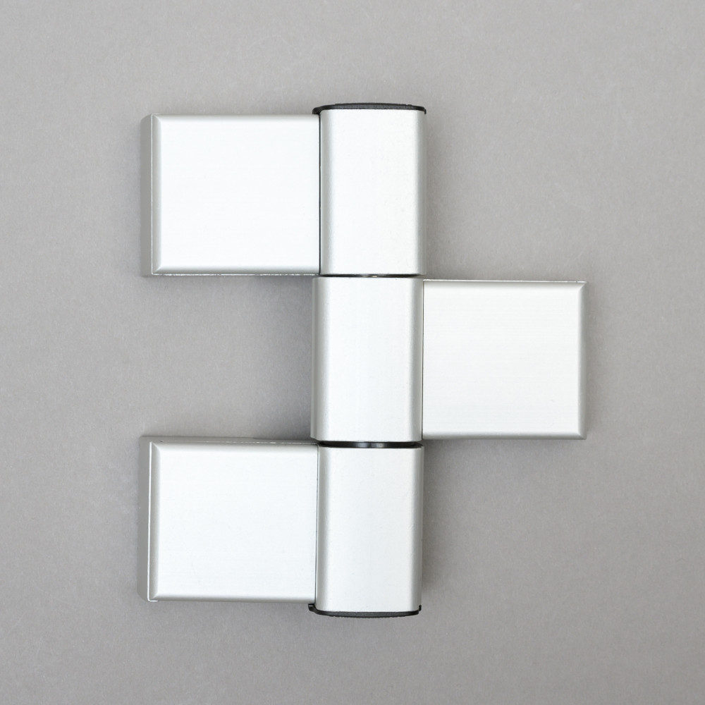 Háromrészes ajtópánt, extrudált alumínium test, acél tengely, 6 irányba állítható, jobbos és