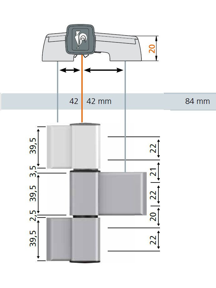 forgáspont 20 mm., eloxált alumínium szín. Felhasználása max. 220 kg ajtószárnyakhoz