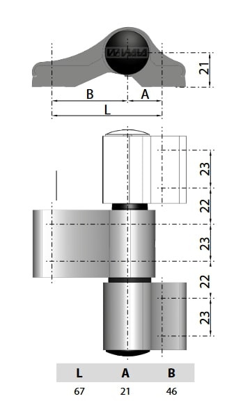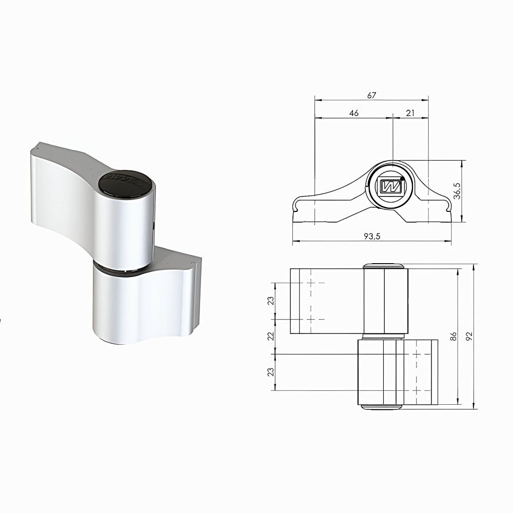 WALA WX 2 R 67, kétrészes, aszimmetrikus, alumínium ajtópánt