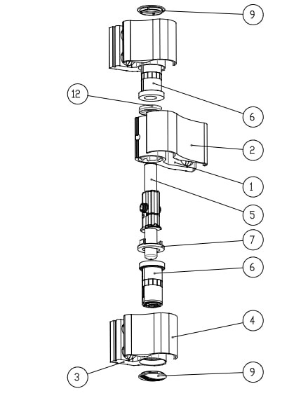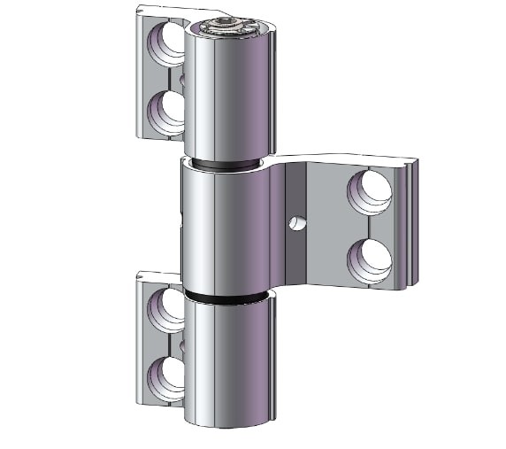 Háromrészes ajtópánt, extrudált alumínium test, acél tengely, 6 irányba állítható,